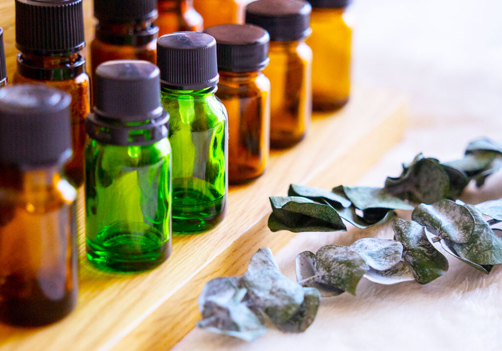 精油(エッセンシャルオイル)は自然の植物や樹木などから抽出した天然成分です。 柔らかく優しい香りが大脳を刺激して、心身へリラックスやストレス解消などの効能があると言われています。 他にも美肌効果や、血行促進、老廃物の排出、筋肉のコリを和らげるなど、心と体を回復させる効果も。